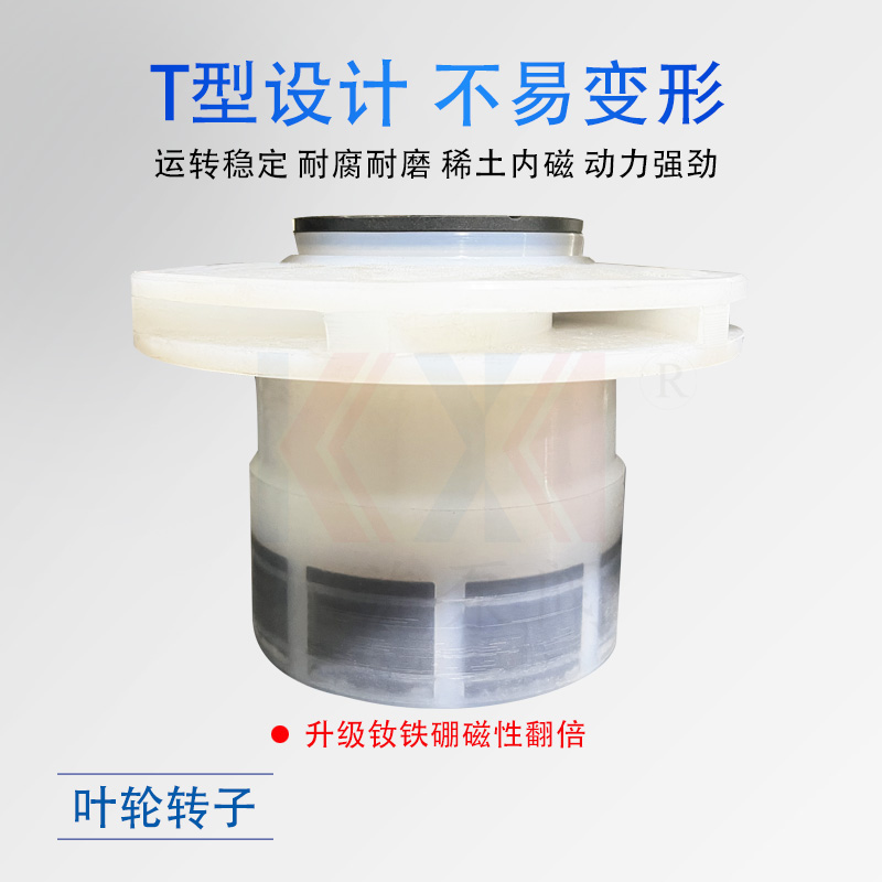 IMC硝酸泵,利用內(nèi)外永磁體傳動(dòng),實(shí)現(xiàn)扭矩?zé)o接觸傳遞,當(dāng)電動(dòng)機(jī)帶動(dòng)外轉(zhuǎn)子總成旋轉(zhuǎn)時(shí),通過磁場(chǎng)的作用磁力線穿過隔離套帶動(dòng)內(nèi)轉(zhuǎn)子總成和葉輪同步旋轉(zhuǎn),隔離套將介質(zhì)完全密封,從而達(dá)到無泄漏輸送介質(zhì)的目的。過流部件采用氟塑料及高純度碳化硅制成,具有良好的耐腐蝕性和密封性,安全無泄漏是輸送硝酸的很好選擇。選配時(shí),1、密封圈選擇包氟圈或四氟圈;2、轉(zhuǎn)子和隔離套更換成PFA,普通的FEP在硝酸中會(huì)有溶脹變型。