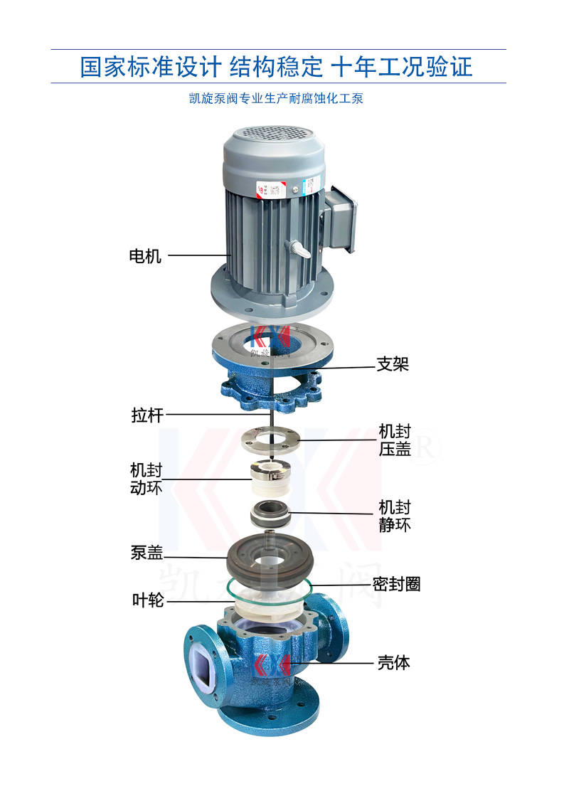 GF型氟塑料合金管道泵采用立式結(jié)構(gòu),進(jìn)出口口徑相同,側(cè)進(jìn)側(cè)出,且位于同一中心線上,對(duì)于安裝場(chǎng)地的面積需求較小。葉輪與電機(jī)直聯(lián),能有效的平衡泵運(yùn)轉(zhuǎn)產(chǎn)生的徑向和軸向負(fù)荷,密封可配備外裝式單端面機(jī)械密封、集裝式雙端面機(jī)械密封,機(jī)封可采用碳化硅、四氟、石墨、氧化鋁、硬質(zhì)合金等材料制造。產(chǎn)品高效節(jié)能,結(jié)構(gòu)簡(jiǎn)單,易維護(hù),在檢修時(shí)無需拆卸管道。