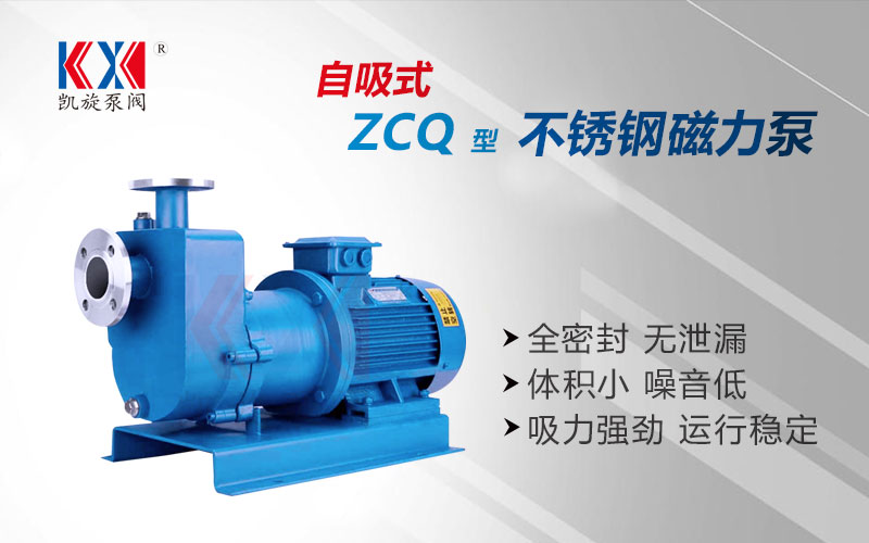 ZCQ型自吸式磁力泵采用外混式軸向回水泵體的結(jié)構(gòu),泵體由吸液室、儲(chǔ)液室、蝸殼、回流孔、氣液分離室等部份組成。泵啟動(dòng)后,在離心力的作用下,吸水室中的剩余液與進(jìn)液管路中的空氣被葉輪攪拌成氣水混合物,混合物經(jīng)蝸殼進(jìn)入氣液分離室,隨著速度減慢,導(dǎo)致氣水分離,空氣由泵出液口排出,液經(jīng)回水孔返回泵內(nèi),經(jīng)過多次循環(huán),進(jìn)液管道中的空氣被排凈,使泵內(nèi)形成一定的真空度,達(dá)到自吸的作用。